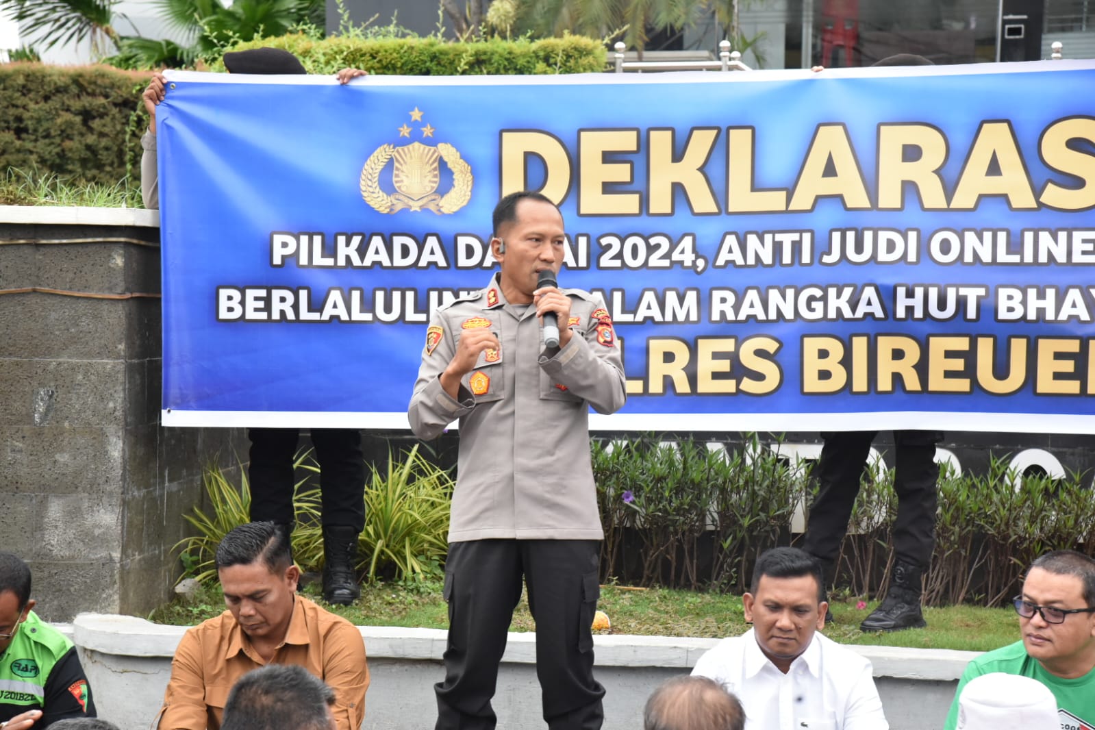 Kapolres Bireuen AKBP Jatmiko, S.H., M.H., mengatakan kegiatan Deklarasi bersama tersebut digelar dalam rangka sinergi seluruh elemen Masyarakat dalam mewujudkan Pilkada serentak 2024 berjalan Aman dan Damai, penciptakan ketertiban lalu lintas, mencegah praktik Judi Online dan memberantas peredaran Narkoba